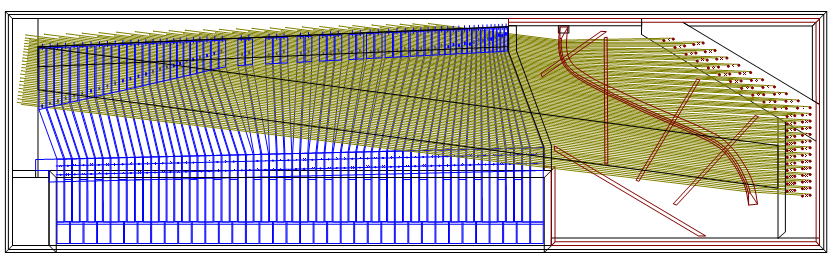 クラヴィコードは弦の全張力(約500Kg)によって底板が左奥と右手前の角が上に上がってくるような変形をすることがあります。これを防ぐためにあらかじめ底板を弦張力による変形と反対方向に反らせてなお且つ図面上の左上から右下に向かう補強を入れるために変更してあります。このために低い方の鍵盤の形状がオリジナルとは異なっています。